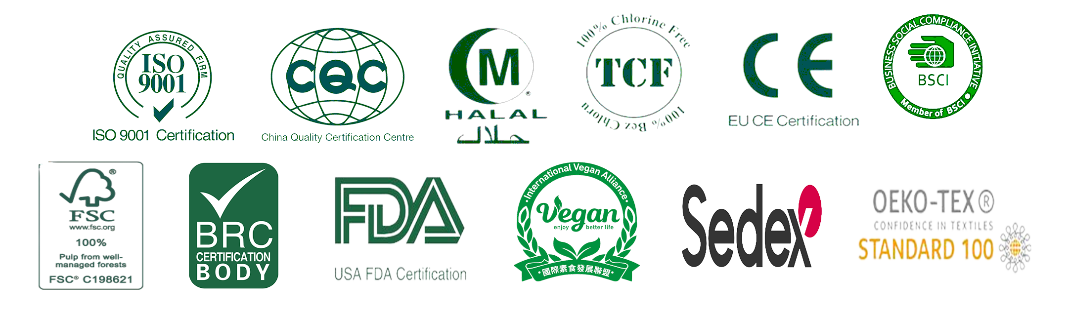 When it comes to the safety of our products, we never compromise- that’s why we put effort to obtain more certifications to reassure our clients. Our certificates: USA FDA, ISO 9001, EU CE, TCF, CQC, BRC, FSC, OEKO-TEX, Vegan Halal, BSCI, Sedex, etc.)